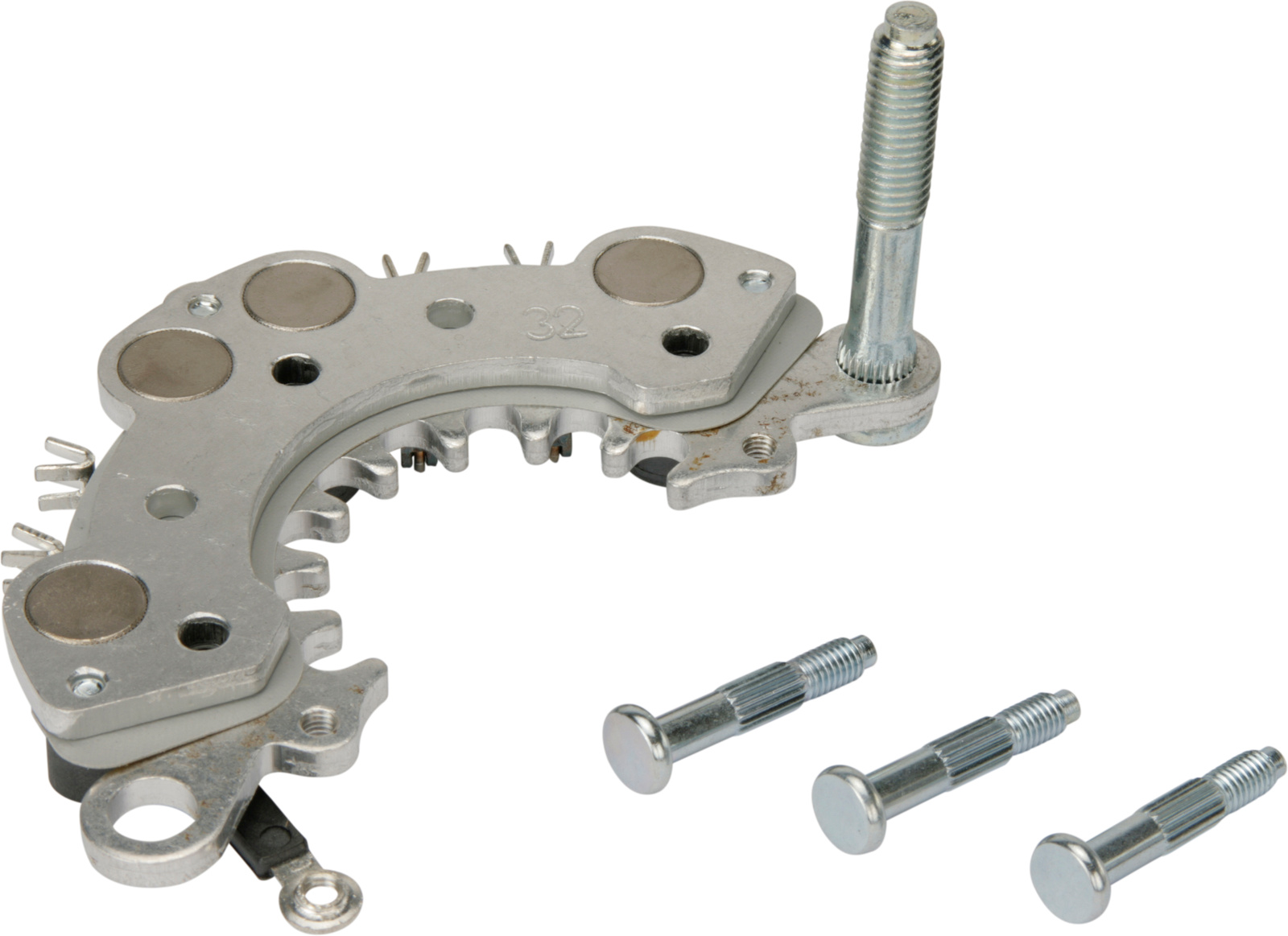 Diode A 35, Anschlüsse für Stator 4, B+ Type Bolzen, W Typ Schraube, Innendurchmesser 39.50, B+ Größe M8x1.25, B+ länge 44.50, W Größe M4/25.50, Anzahl der Dioden 8, Steuerdiode Ohne, Diodensockel Aluminium, Außendurchmesser 114.00, Bemerkungen Mit anschluss W.