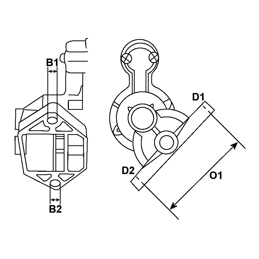 Loch B1 10.00, Montageabstand 73.00, Loch B2 10.00, Position D1 15, Position D2 45, Abstand O1 85.00