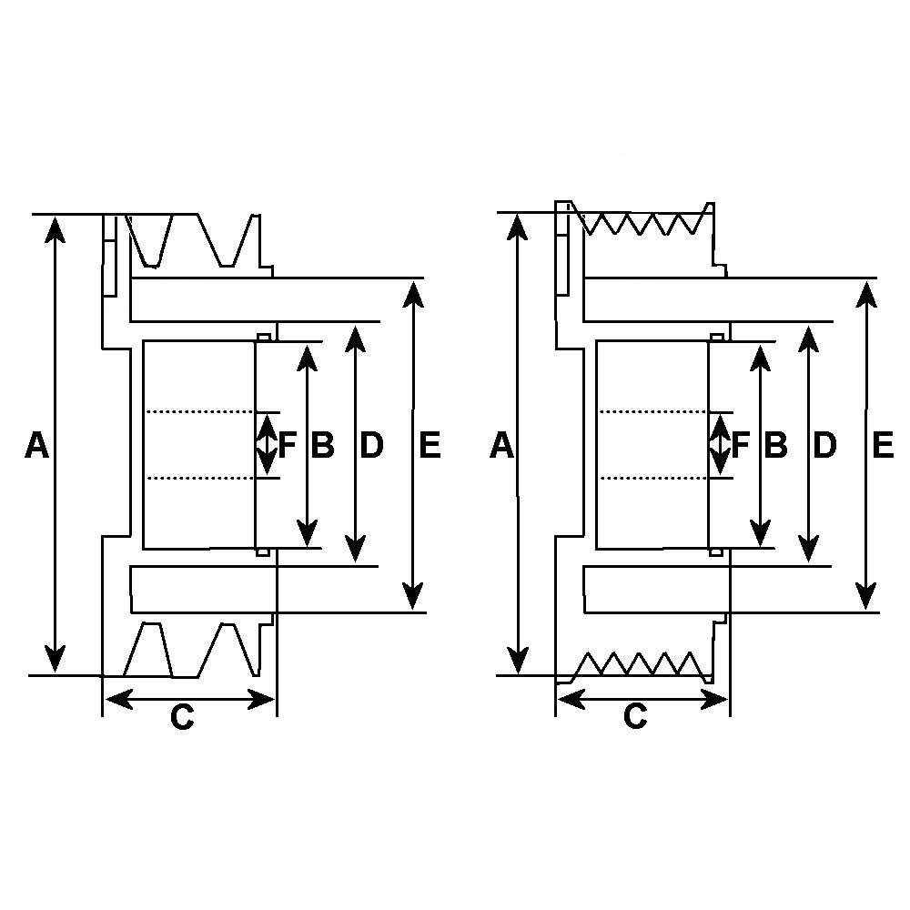 Maß 1. Spur 8.30, Abstand/Hinten 10.50, Freilauf Ohne, Spuren 4, Breite 23.50, Tiefe 8.40, Riemenscheibentyp Keilrippenriemenscheibe, Bohrung Durchmesser 17.00, Riementyp Multi riemen, Außendurchmesser 54.50