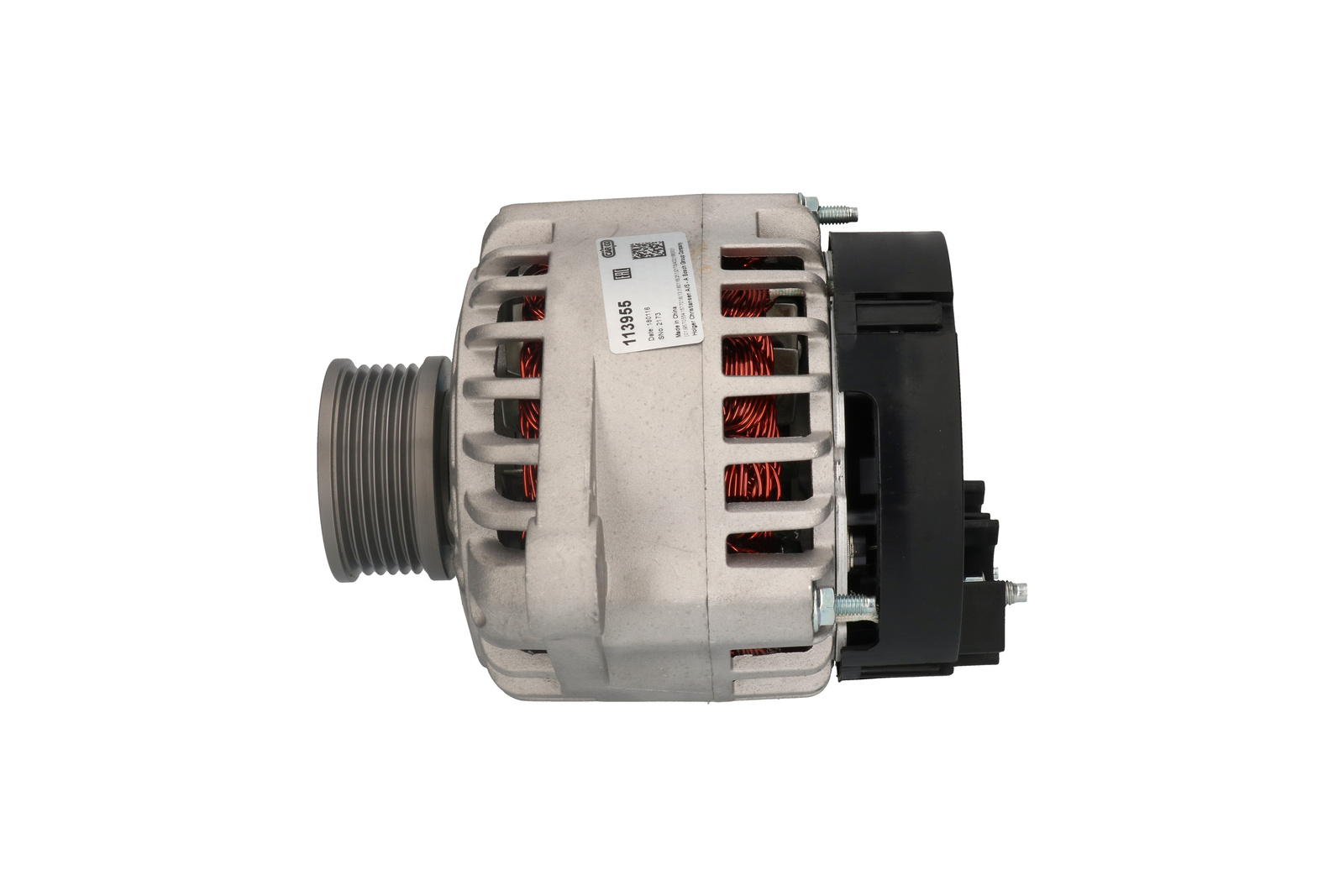 Volt 14, Amp. 105, Remskive SP/FW, Størrelse Holdearmshul 1 12.30, Remskivediameter 61.50, Prod. info BN, D+ størrelse M5/13.00, D+ Position 45, Bredde - holdearm 61.00, Remskiveafstand 112.50, B+ M8x1.25, Radius 2 90.00, Kontrol diyotlari PL106, PUQ Remskive på 113955 fra CAC er fra NF., Radius 90.00, Rotation CR, Remstrammerhul 1 12.20, Spor i remskive 6, Regulatortype IR, Relæ/kulholder plac. 28, B+ Placering 47, Remstrammerhul plac. 58, Totallængde 191.00