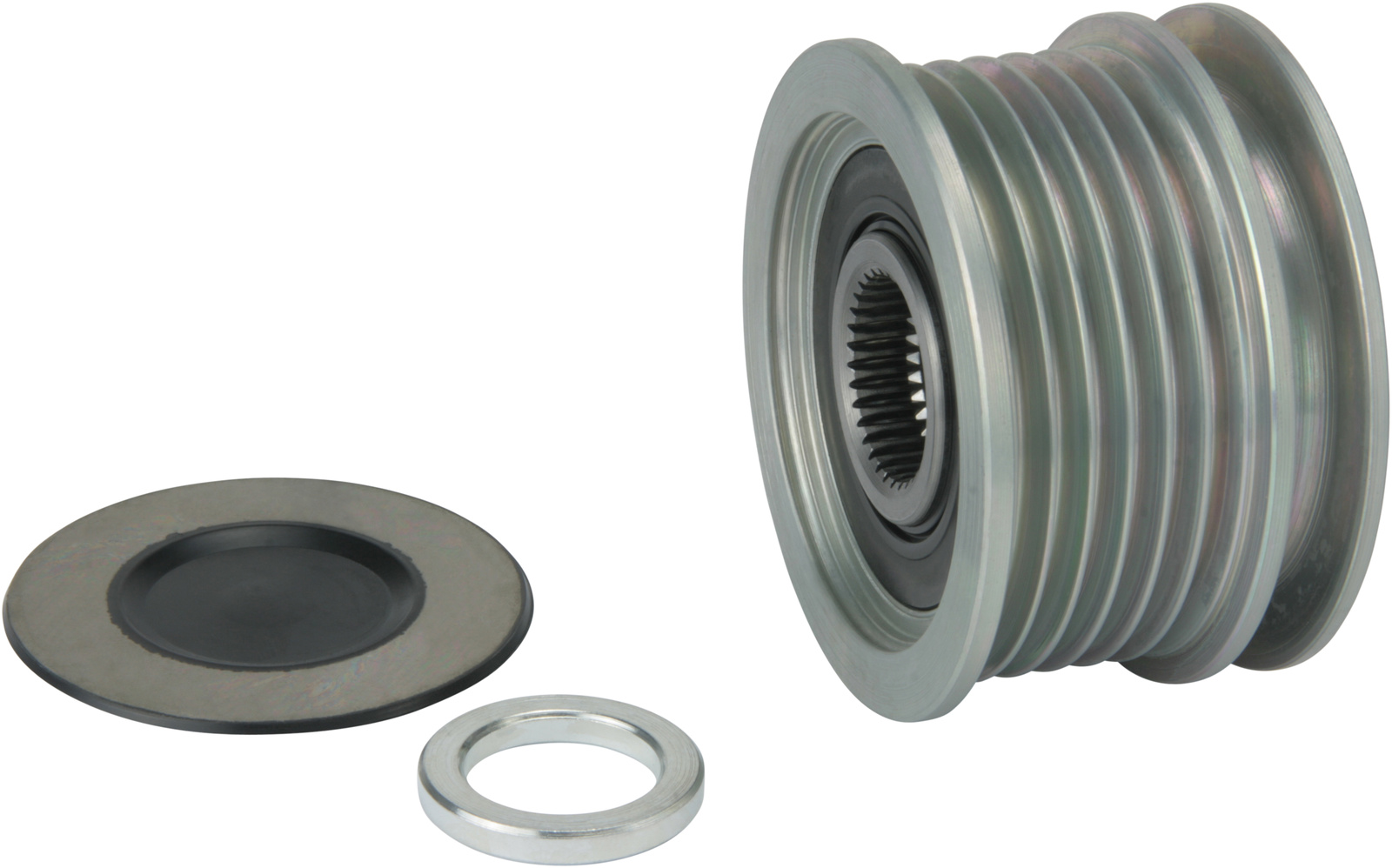 Mål 1. rille 14.90, Afstand bag 2.70, Friløb Med, Bredde 38.20, Hul D 17.00, Riller 6, Dybde 7.60, Rotation CR, Remtype Multirem, Gevind str. M16-1.50, Udv. diameter 55.70, Bemærkning Aftrækker: HC-CARGO 210843., Remskivetype SP;FW