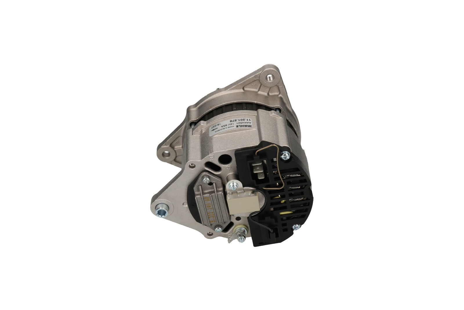 Volt 14, Ampère: 65, Poelie V-Groef, Diameter poelie 63.60, Prod. info Nieuw/Origineel, Maat Montage oor/achter 8.50, D+ Position 25, Poelieafstand 34.60, Toegepast op Ford, Austin, Rover. MG, Mercury, Renault, Herkomst: Iskra/Mahle, Afstand ophanging 81.00, Radius 87.00, Gat Span-oor 1 M8, Groeven/poelie 1, Regelaar type IR, Maat Montage-oor 1 8.20, D+ Size Plug, Breedte/montage-oor 10.80, B+ Plug, Radius 2 87.00, Plug no. 1 PL22, Draairichting Rechtsom, Regelaar/borstelhouder positie 43, B+ Uitvoering 25, Positie Gat Span-oor 10, Totale lengte: 170.00