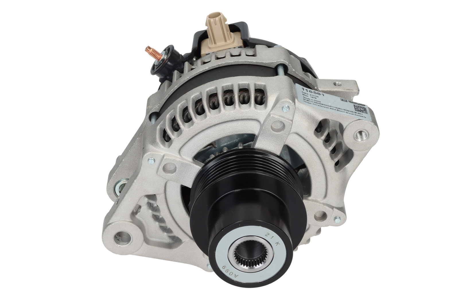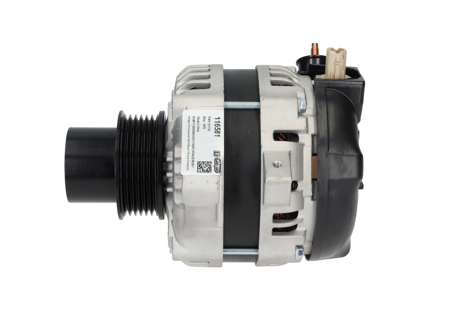 Aansluiting IF, Volt 14, Ampère: 100, Communicatie LIN, Poelie Multi-V/ Vrijloop, Diameter poelie 67.50, Maat Montage oor/achter M10, Poelieafstand 30.20, Remarks 3 Deze alternator heeft een COM signaal, wij raden u aan om via het OEM nummer te zoeken zodoende het correcte artikel kan besteld worden!, Afstand ophanging 35.50, Radius 89.00, Gat Span-oor 1 M8, Groeven/poelie 6, Regelaar type IR, Maat Montage-oor 1 11.00, Terminal type LIN, Breedte/montage-oor 19.00, B+ M6, Fan IF, Radius 2 82.50, Plug no. 1 PL204, Draairichting Rechtsom, B+ Uitvoering 20, Positie Gat Span-oor 58, Totale lengte: 190.00