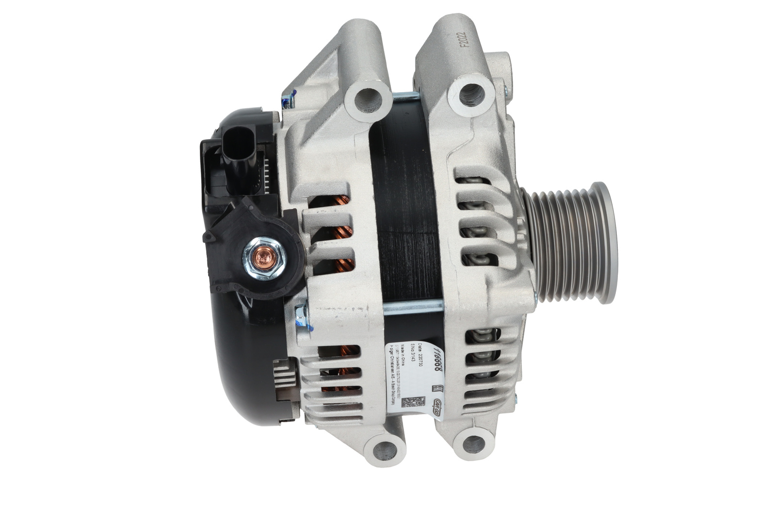 Aansluiting IF, Volt 14, Ampère: 210, Communicatie COM, Poelie Multi-V/ Vrijloop, Diameter poelie 49.00, Maat Montage oor/achter 10.50, Poelieafstand 30.00, Remarks 3 Deze alternator heeft een COM signaal, wij raden u aan om via het OEM nummer te zoeken zodoende het correcte artikel kan besteld worden!, Afstand ophanging 40.50, Radius 87.00, Gat Span-oor 1 8.00x9.50, Groeven/poelie 8, Regelaar type IR, Maat Montage-oor 1 8.00, Terminal type LIN, Breedte/montage-oor 62.50, B+ M8x1.25, Fan IF, Radius 2 87.00, Plug no. 1 PL125, Draairichting Rechtsom, B+ Uitvoering 10, Totale lengte: 172.00